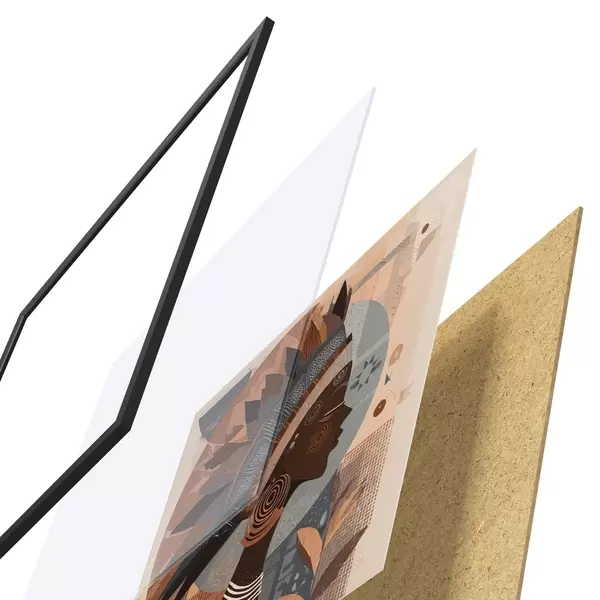 Plagát sa skladá z rámu, plexiskla, vytlačeného obrazu a podkladu z drevotriesky. Plagát možno okamžite zavesiť na stenu vďaka úchytom na zadnej strane.