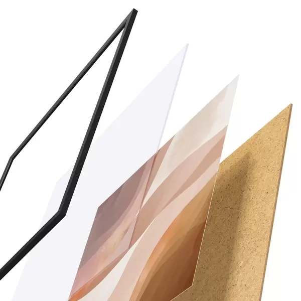Plagát sa skladá z rámu, plexiskla, vytlačeného obrazu a podkladu z drevotriesky. Plagát možno okamžite zavesiť na stenu vďaka úchytom na zadnej strane.