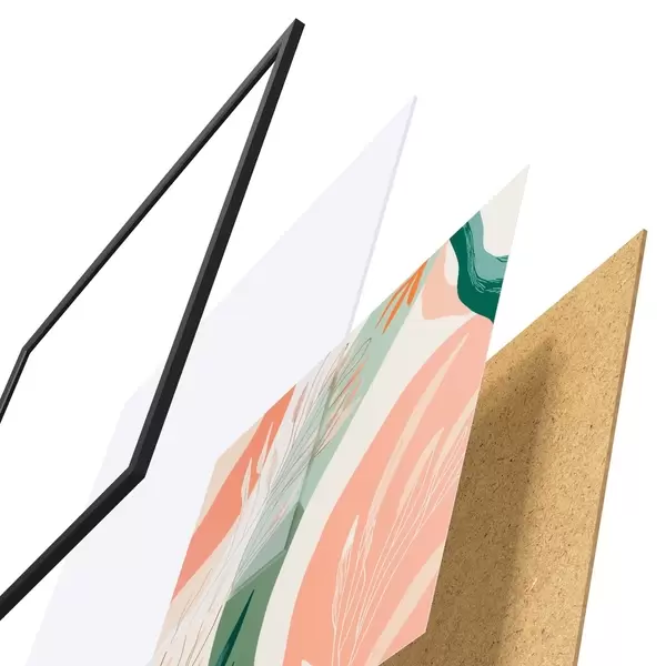 Plagát sa skladá z rámu, plexiskla, vytlačeného obrazu a podkladu z drevotriesky. Plagát možno okamžite zavesiť na stenu vďaka úchytom na zadnej strane.