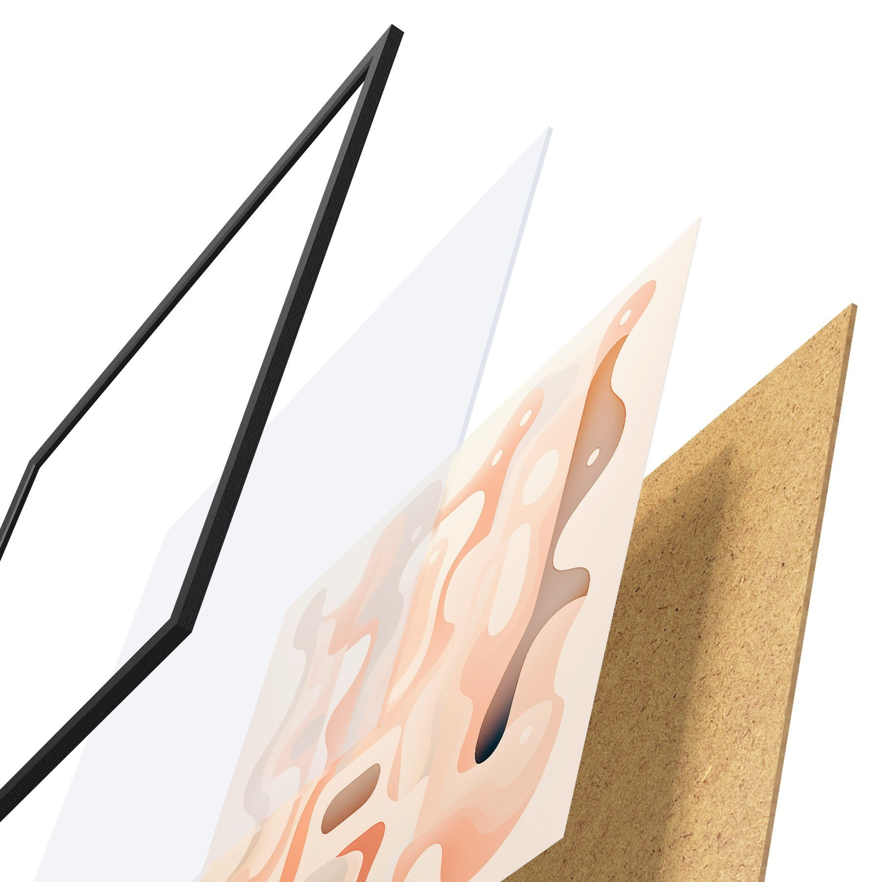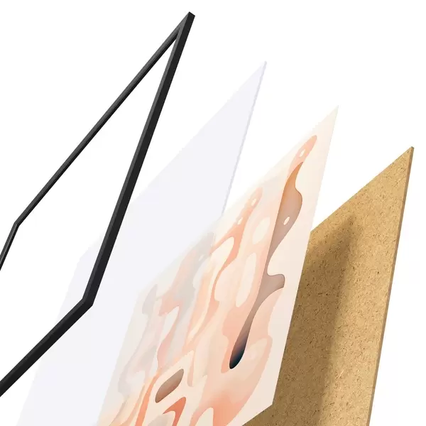 Plagát sa skladá z rámu, plexiskla, vytlačeného obrazu a podkladu z drevotriesky. Plagát možno okamžite zavesiť na stenu vďaka úchytom na zadnej strane.