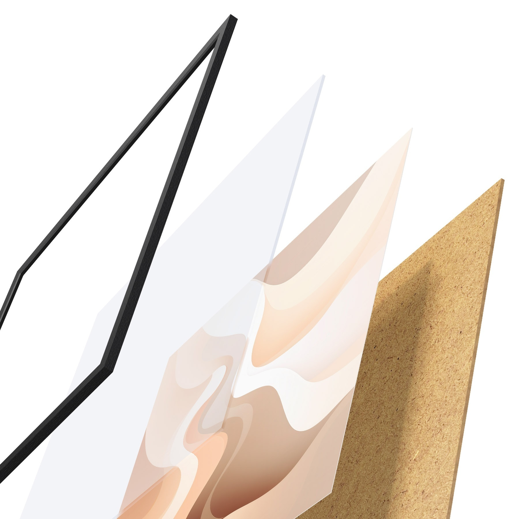 Plagát sa skladá z rámu, plexiskla, vytlačeného obrazu a podkladu z drevotriesky. Plagát možno okamžite zavesiť na stenu vďaka úchytom na zadnej strane.