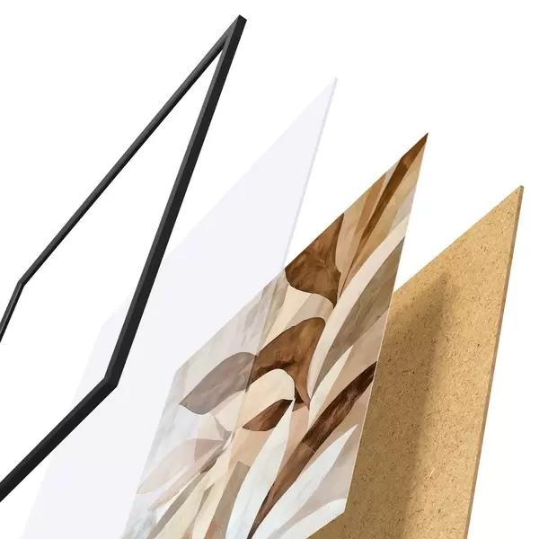 Plagát sa skladá z rámu, plexiskla, vytlačeného obrazu a podkladu z drevotriesky. Plagát možno okamžite zavesiť na stenu vďaka úchytom na zadnej strane.