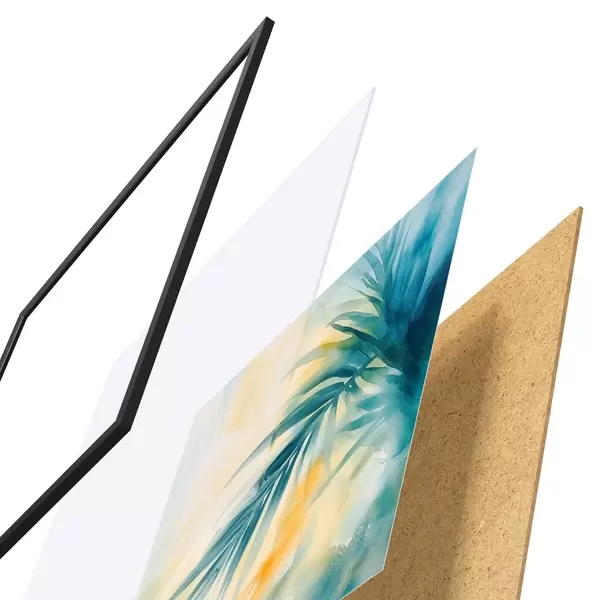Plagát sa skladá z rámu, plexiskla, vytlačeného obrazu a podkladu z drevotriesky. Plagát možno okamžite zavesiť na stenu vďaka úchytom na zadnej strane.
