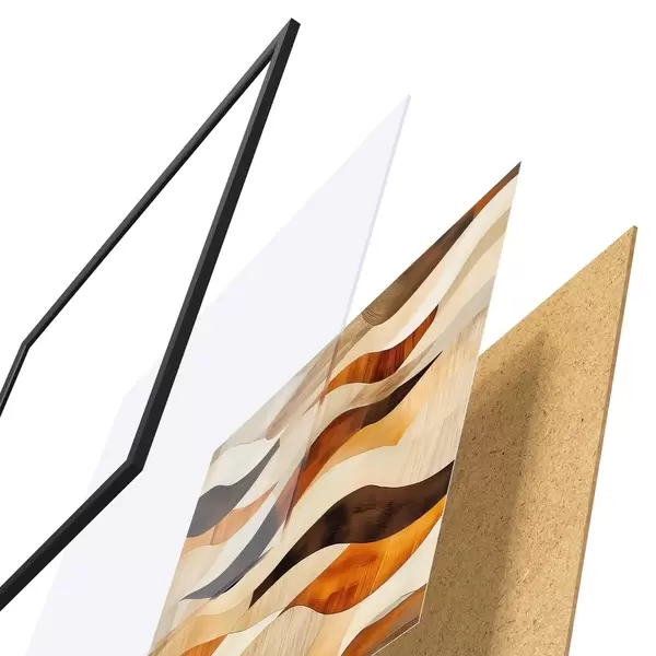 Plagát sa skladá z rámu, plexiskla, vytlačeného obrazu a podkladu z drevotriesky. Plagát možno okamžite zavesiť na stenu vďaka úchytom na zadnej strane.