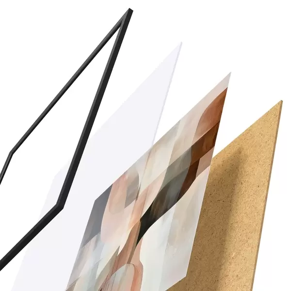 Plagát sa skladá z rámu, plexiskla, vytlačeného obrazu a podkladu z drevotriesky. Plagát možno okamžite zavesiť na stenu vďaka úchytom na zadnej strane.