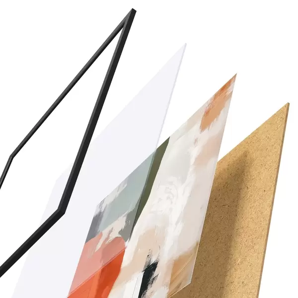 Plagát sa skladá z rámu, plexiskla, vytlačeného obrazu a podkladu z drevotriesky. Plagát možno okamžite zavesiť na stenu vďaka úchytom na zadnej strane.