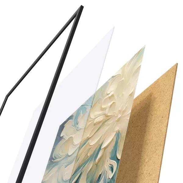 Plagát sa skladá z rámu, plexiskla, vytlačeného obrazu a podkladu z drevotriesky. Plagát možno okamžite zavesiť na stenu vďaka úchytom na zadnej strane.