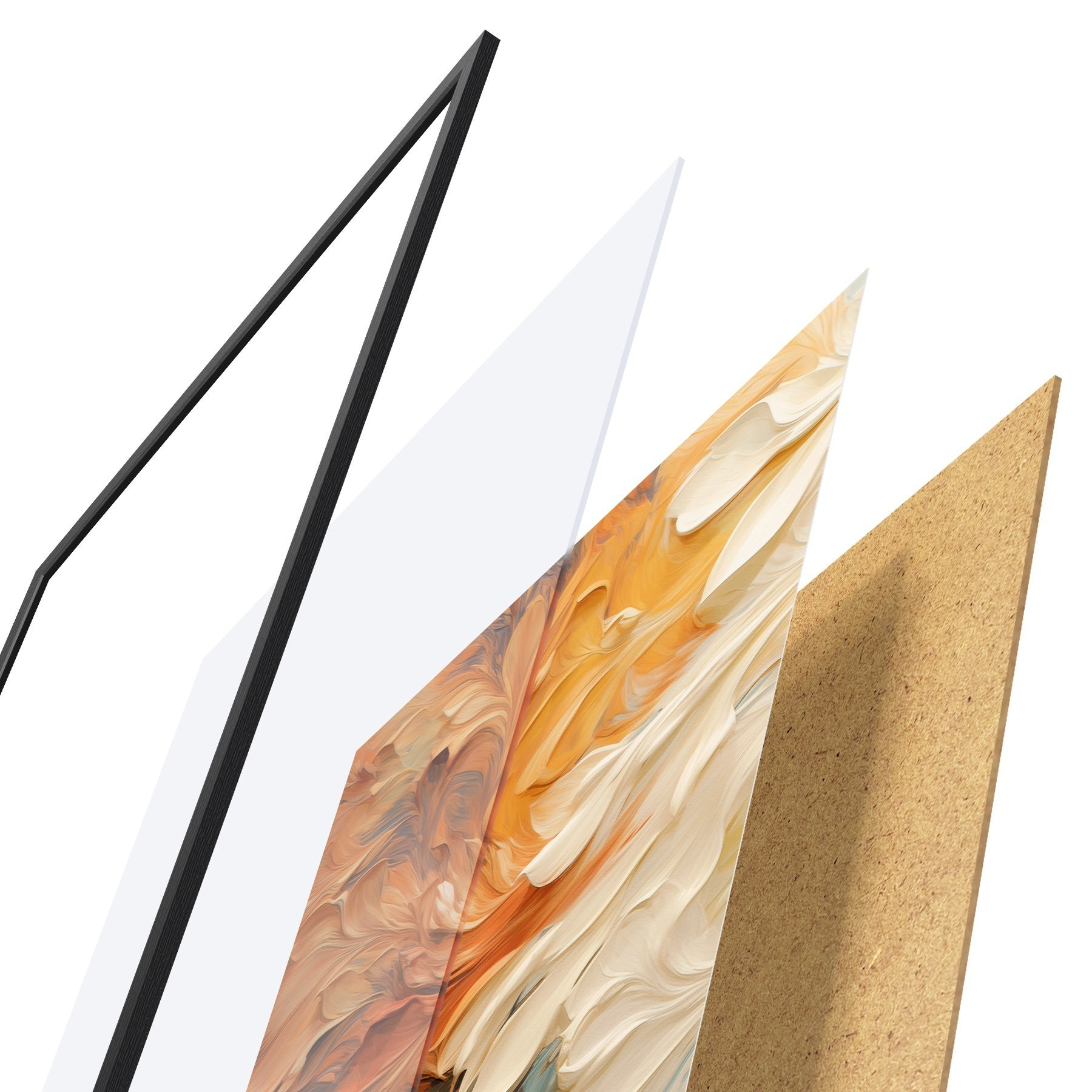Plagát sa skladá z rámu, plexiskla, vytlačeného obrazu a podkladu z drevotriesky. Plagát možno okamžite zavesiť na stenu vďaka úchytom na zadnej strane.
