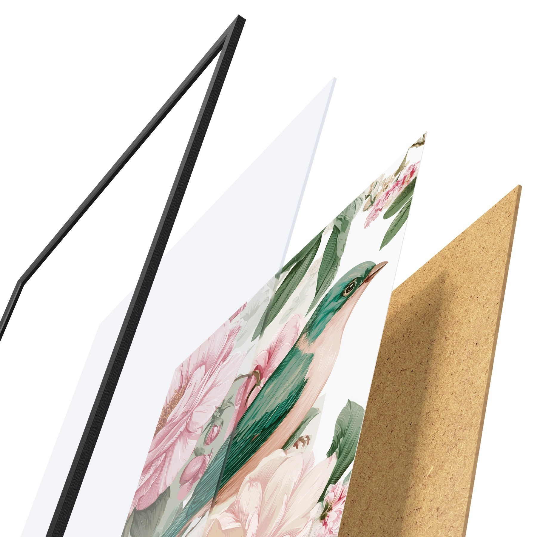 Plagát sa skladá z rámu, plexiskla, vytlačeného obrazu a podkladu z drevotriesky. Plagát možno okamžite zavesiť na stenu vďaka úchytom na zadnej strane.