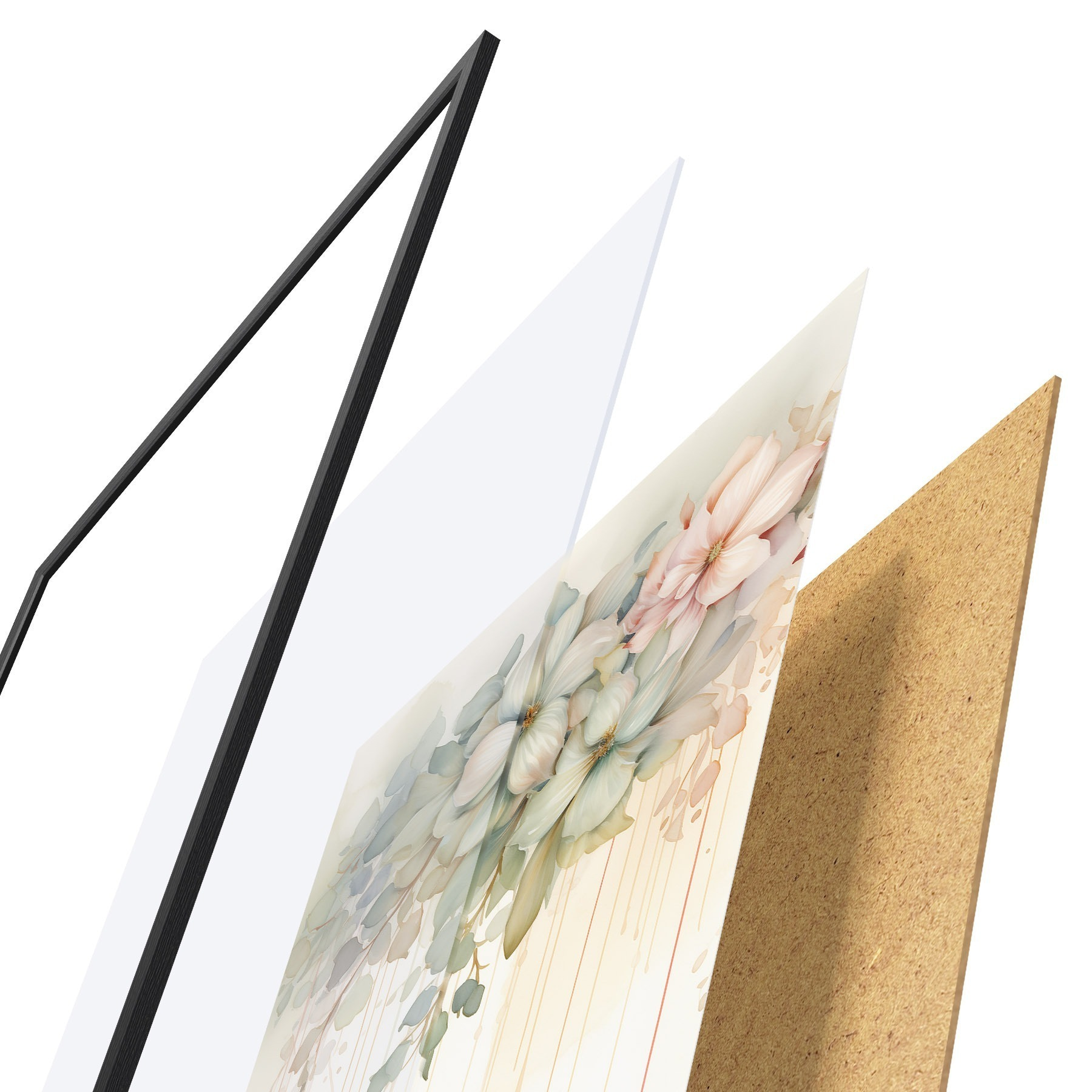 Plagát sa skladá z rámu, plexiskla, vytlačeného obrazu a podkladu z drevotriesky. Plagát možno okamžite zavesiť na stenu vďaka úchytom na zadnej strane.