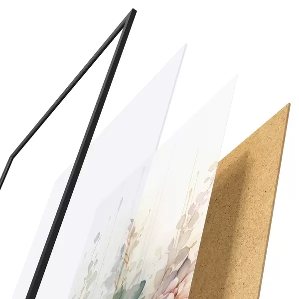 Plagát sa skladá z rámu, plexiskla, vytlačeného obrazu a podkladu z drevotriesky. Plagát možno okamžite zavesiť na stenu vďaka úchytom na zadnej strane.
