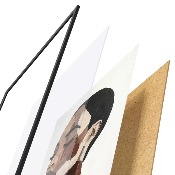 Plagát sa skladá z rámu, plexiskla, vytlačeného obrazu a podkladu z drevotriesky. Plagát možno okamžite zavesiť na stenu vďaka úchytom na zadnej strane.