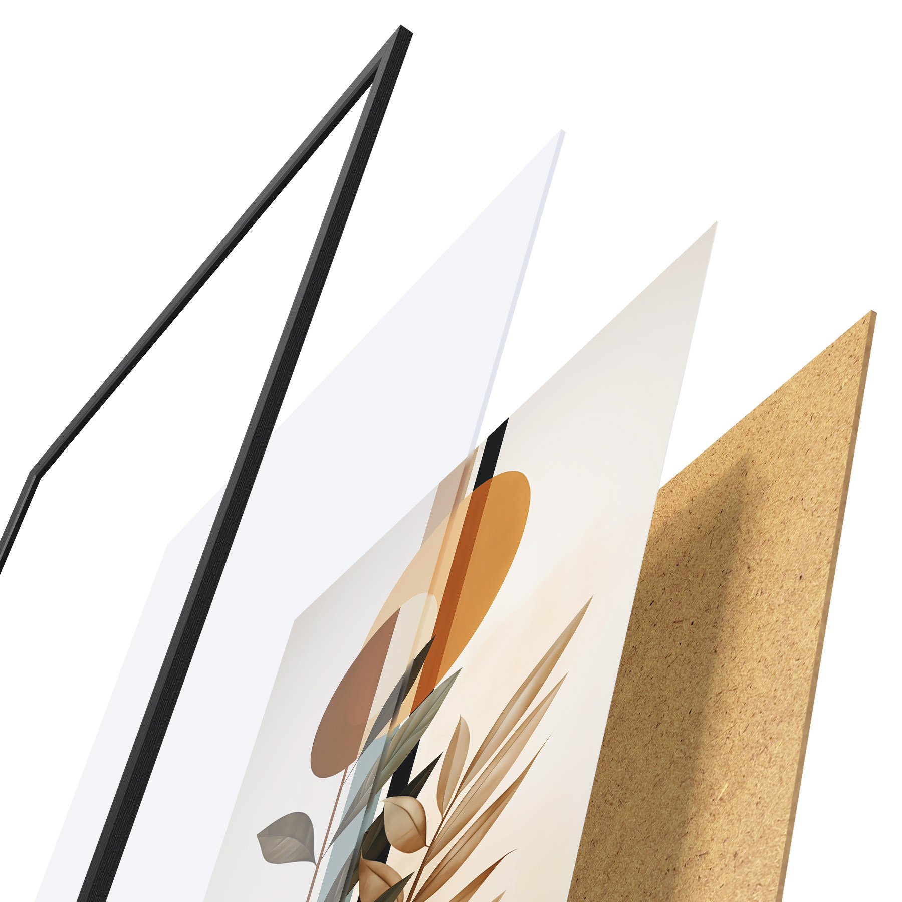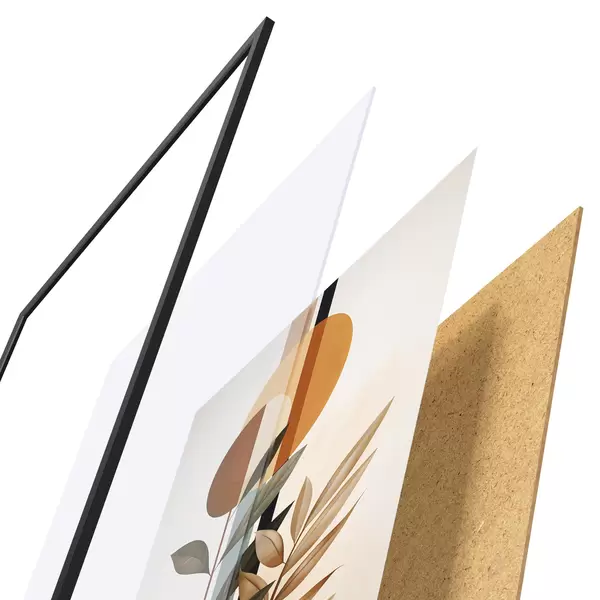 Plagát sa skladá z rámu, plexiskla, vytlačeného obrazu a podkladu z drevotriesky. Plagát možno okamžite zavesiť na stenu vďaka úchytom na zadnej strane.