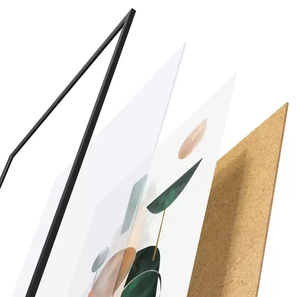 Plagát sa skladá z rámu, plexiskla, vytlačeného obrazu a podkladu z drevotriesky. Plagát možno okamžite zavesiť na stenu vďaka úchytom na zadnej strane.