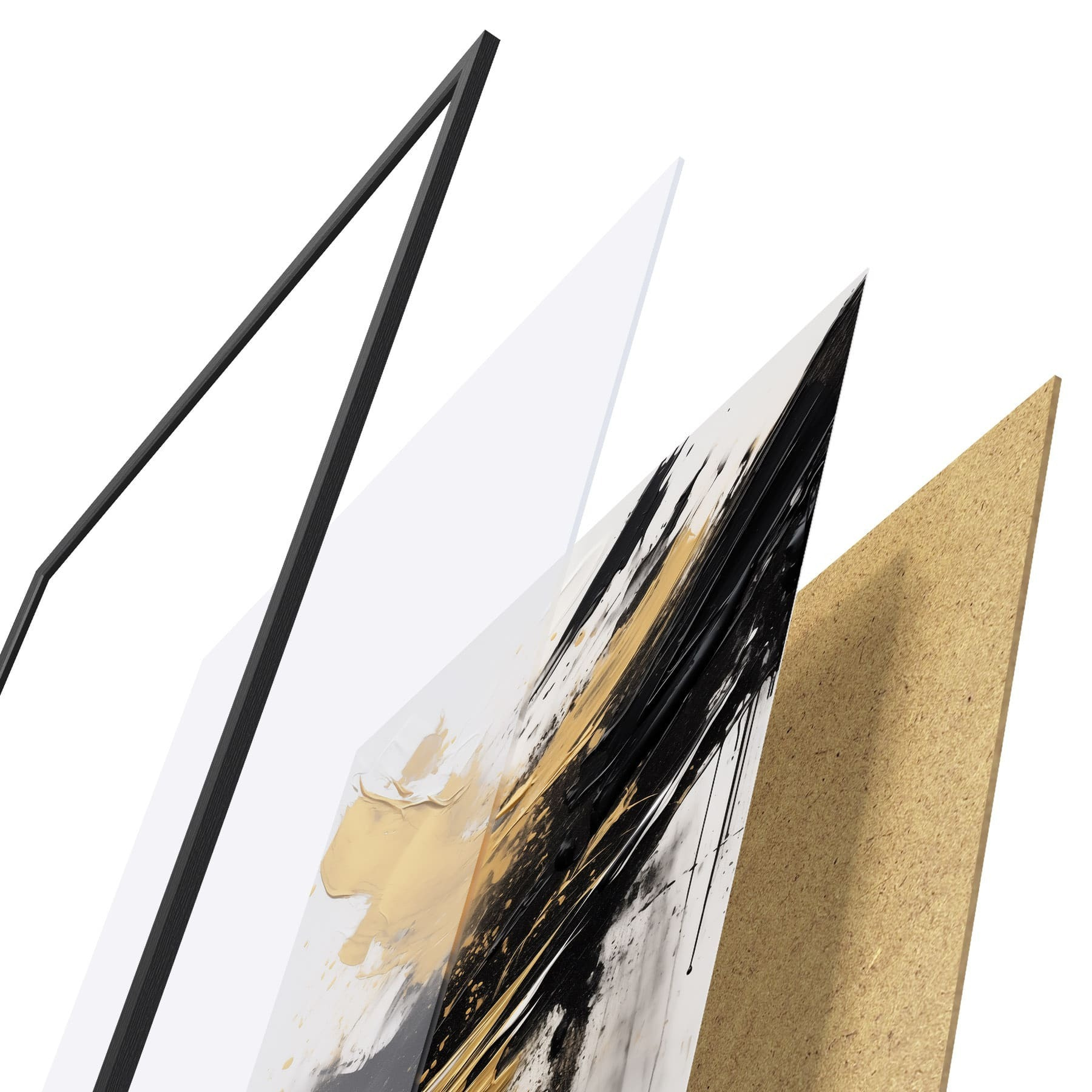 Plagát sa skladá z rámu, plexiskla, vytlačeného obrazu a podkladu z drevotriesky. Plagát možno okamžite zavesiť na stenu vďaka úchytom na zadnej strane.