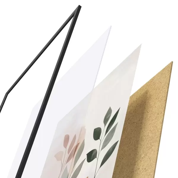 Plagát sa skladá z rámu, plexiskla, vytlačeného obrazu a podkladu z drevotriesky. Plagát možno okamžite zavesiť na stenu vďaka úchytom na zadnej strane.