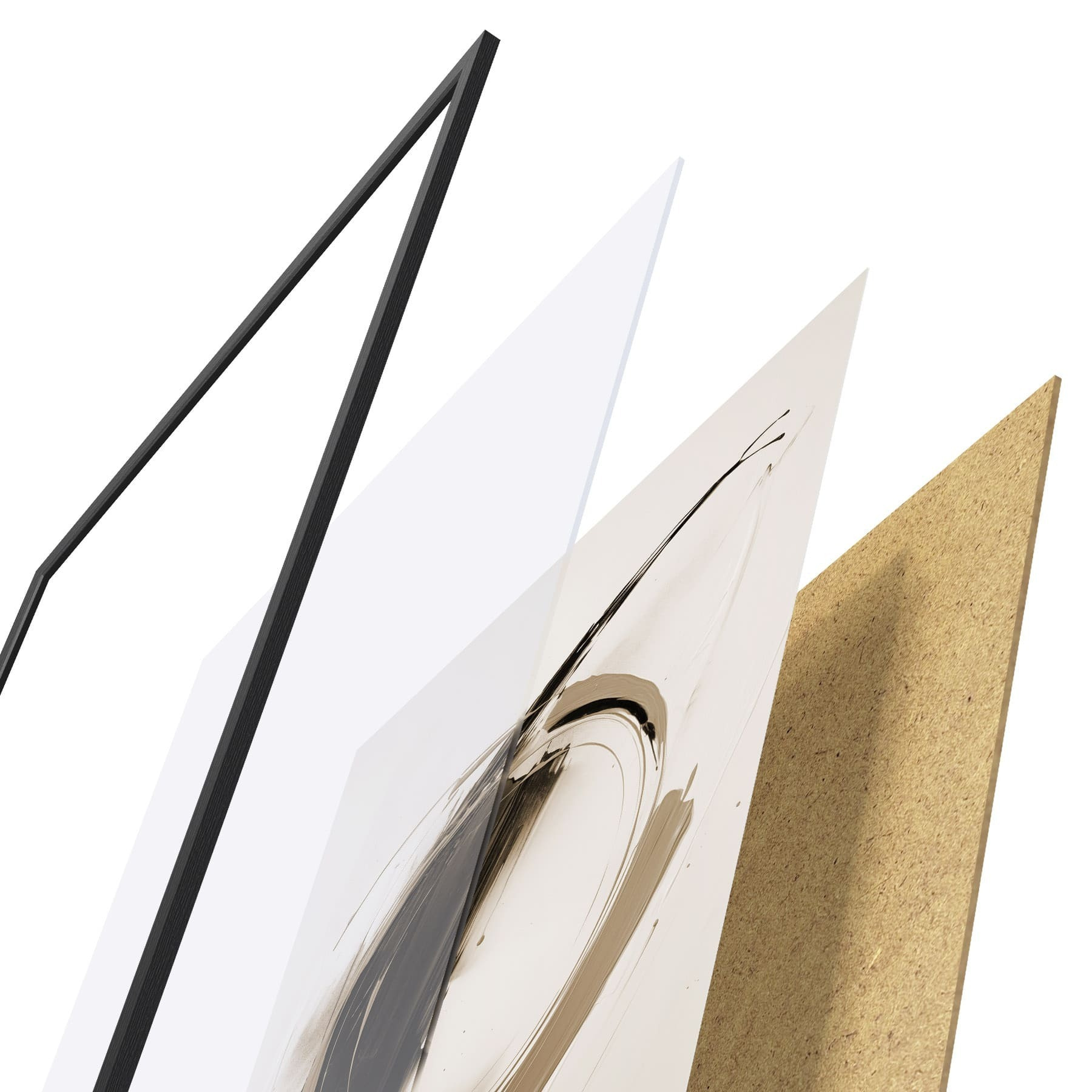 Plagát sa skladá z rámu, plexiskla, vytlačeného obrazu a podkladu z drevotriesky. Plagát možno okamžite zavesiť na stenu vďaka úchytom na zadnej strane.