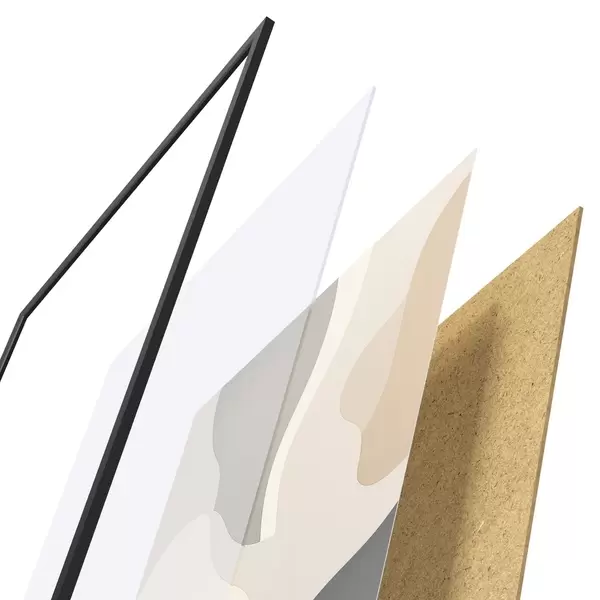 Plagát sa skladá z rámu, plexiskla, vytlačeného obrazu a podkladu z drevotriesky. Plagát možno okamžite zavesiť na stenu vďaka úchytom na zadnej strane.