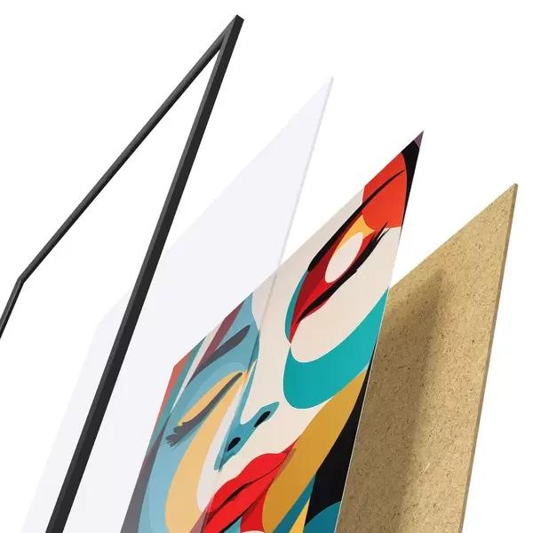 Plagát sa skladá z rámu, plexiskla, vytlačeného obrazu a podkladu z drevotriesky. Plagát možno okamžite zavesiť na stenu vďaka úchytom na zadnej strane.