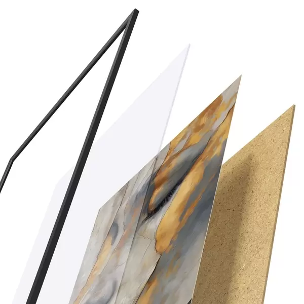 Plagát sa skladá z rámu, plexiskla, vytlačeného obrazu a podkladu z drevotriesky. Plagát možno okamžite zavesiť na stenu vďaka úchytom na zadnej strane.