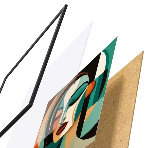 Plagát sa skladá z rámu, plexiskla, vytlačeného obrazu a podkladu z drevotriesky. Plagát možno okamžite zavesiť na stenu vďaka úchytom na zadnej strane.