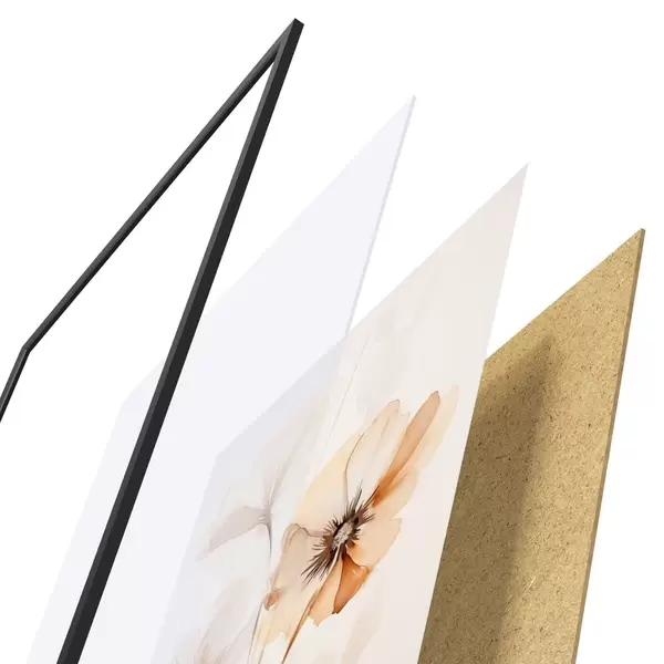Plagát sa skladá z rámu, plexiskla, vytlačeného obrazu a podkladu z drevotriesky. Plagát možno okamžite zavesiť na stenu vďaka úchytom na zadnej strane.