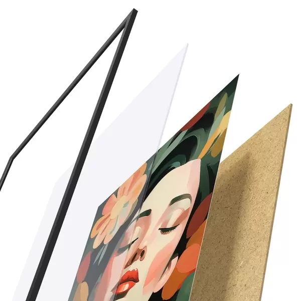 Plagát sa skladá z rámu, plexiskla, vytlačeného obrazu a podkladu z drevotriesky. Plagát možno okamžite zavesiť na stenu vďaka úchytom na zadnej strane.