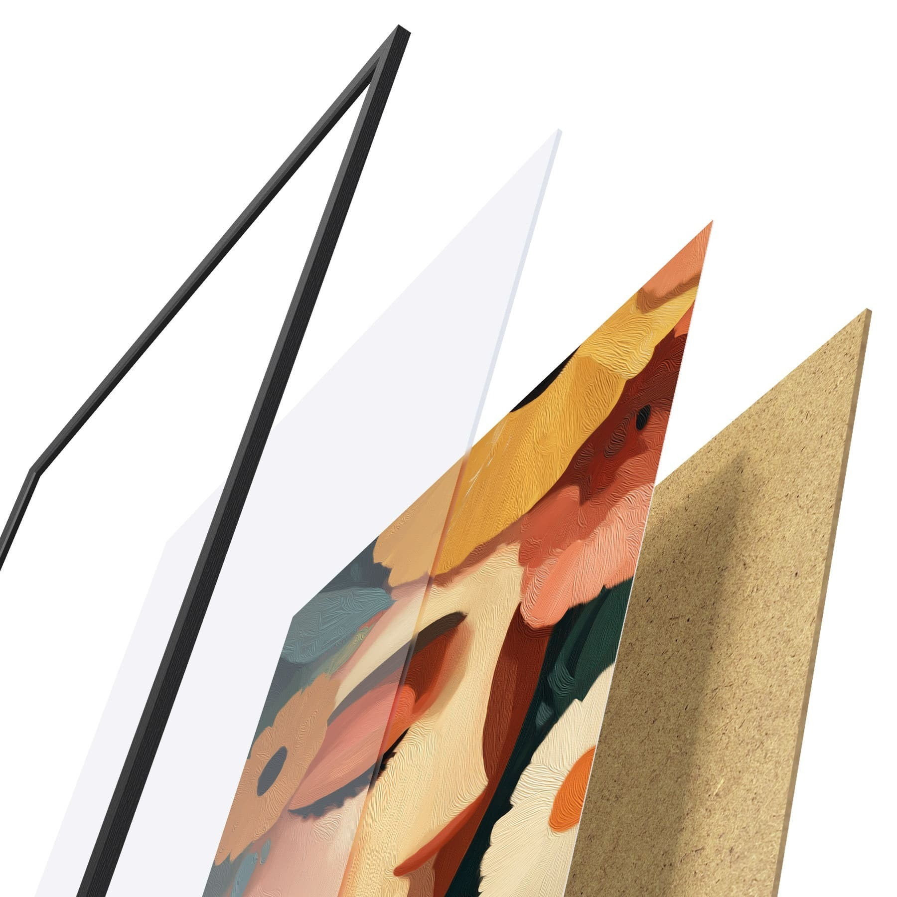 Plagát sa skladá z rámu, plexiskla, vytlačeného obrazu a podkladu z drevotriesky. Plagát možno okamžite zavesiť na stenu vďaka úchytom na zadnej strane.