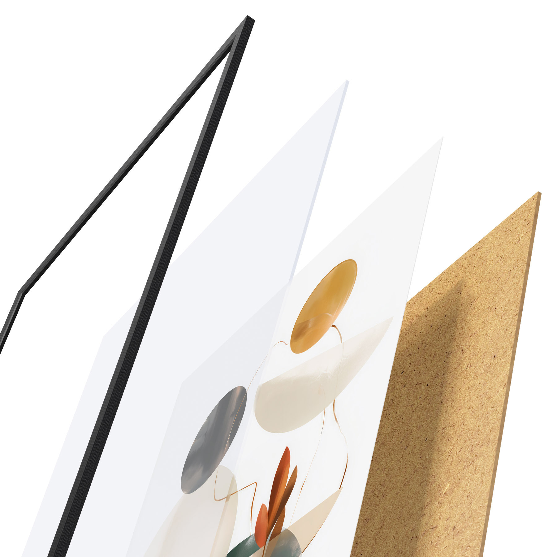 Plagát sa skladá z rámu, plexiskla, vytlačeného obrazu a podkladu z drevotriesky. Plagát možno okamžite zavesiť na stenu vďaka úchytom na zadnej strane.