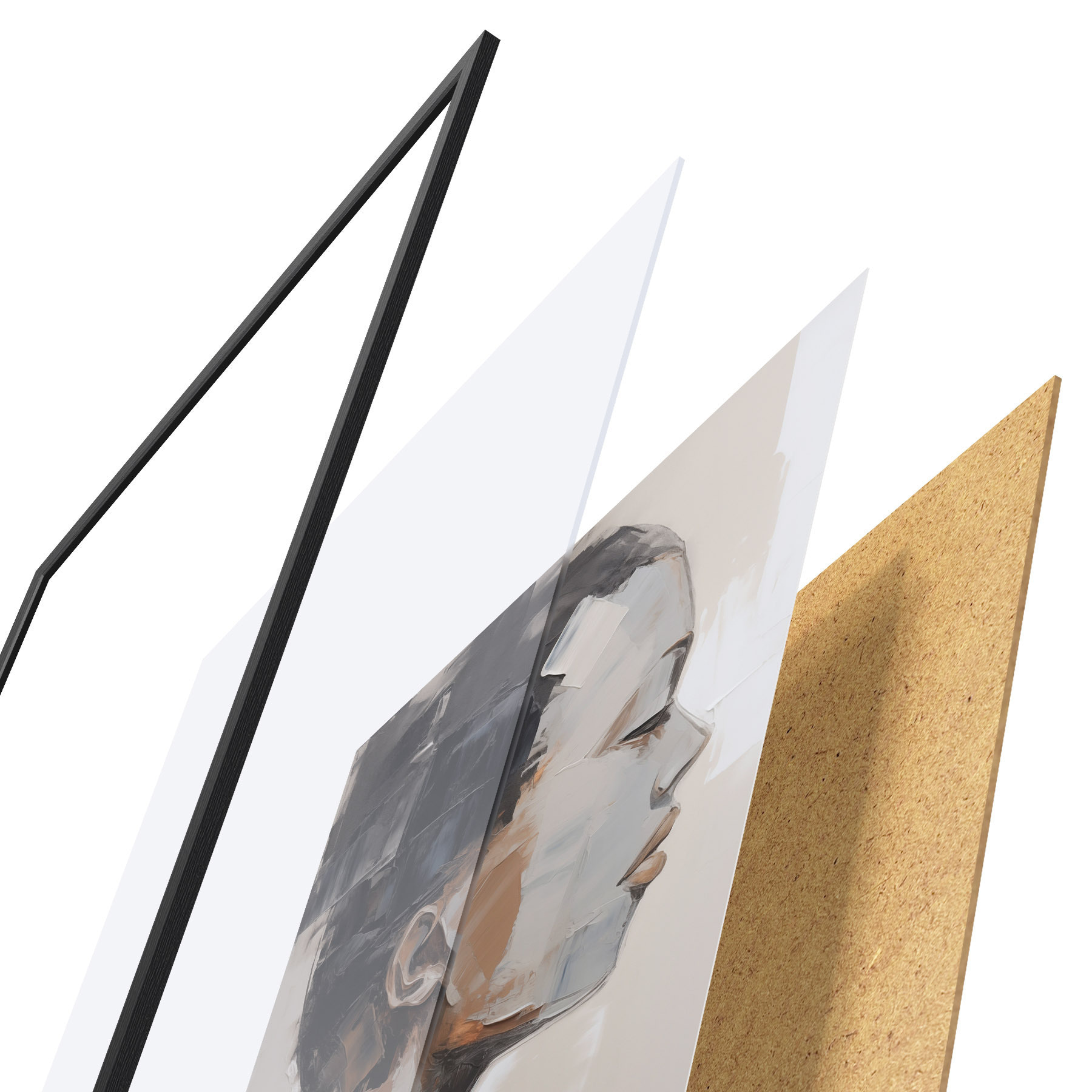 Plagát sa skladá z rámu, plexiskla, vytlačeného obrazu a podkladu z drevotriesky. Plagát možno okamžite zavesiť na stenu vďaka úchytom na zadnej strane.