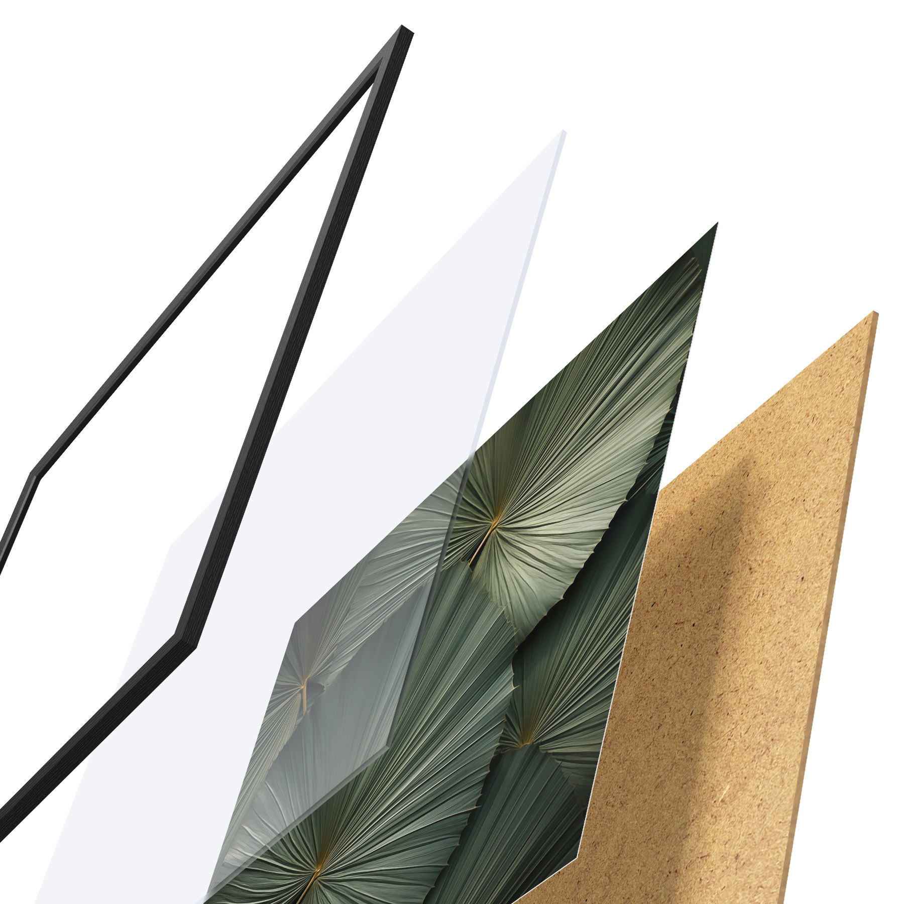 Plagát sa skladá z rámu, plexiskla, vytlačeného obrazu a podkladu z drevotriesky. Plagát možno okamžite zavesiť na stenu vďaka úchytom na zadnej strane.