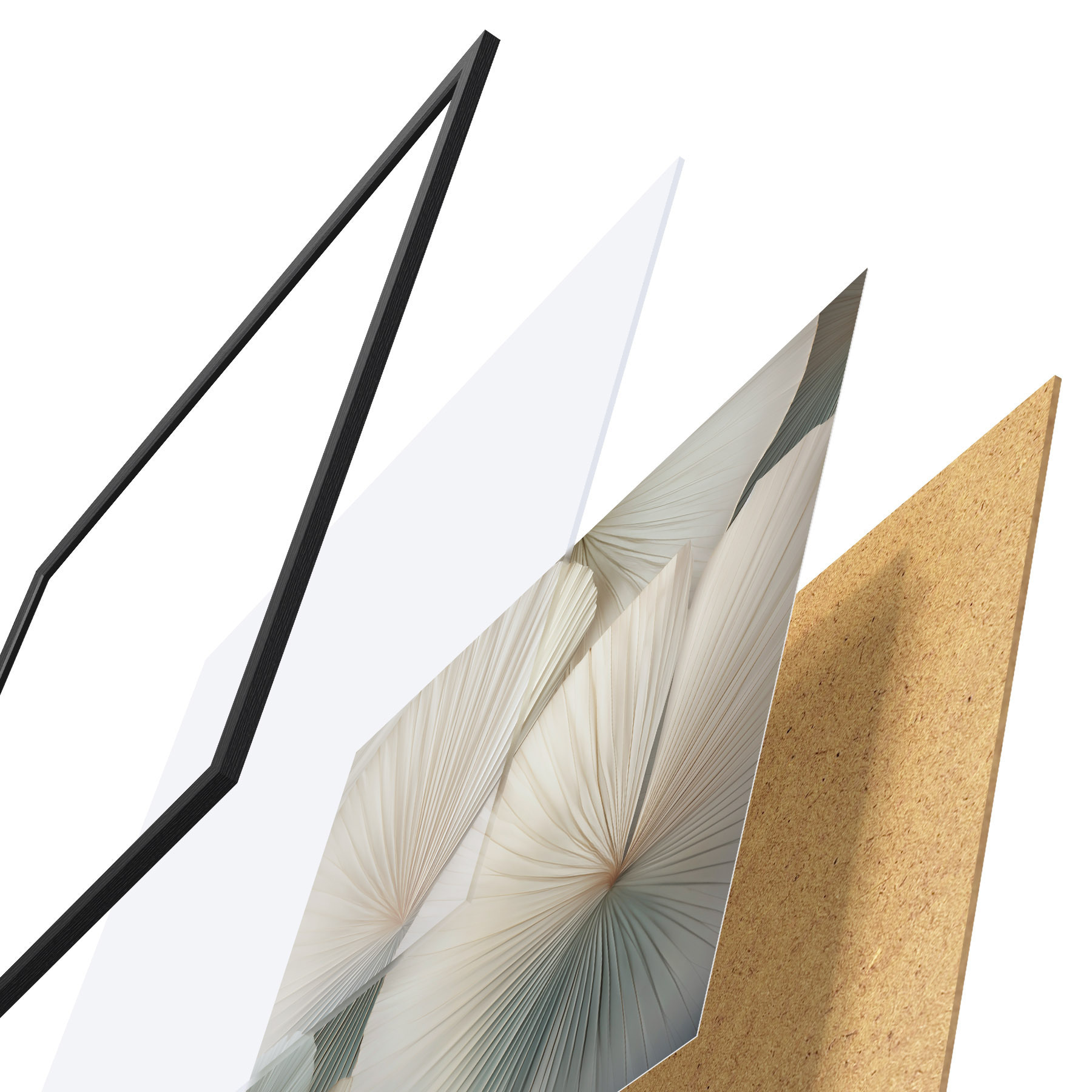 Plagát sa skladá z rámu, plexiskla, vytlačeného obrazu a podkladu z drevotriesky. Plagát možno okamžite zavesiť na stenu vďaka úchytom na zadnej strane.