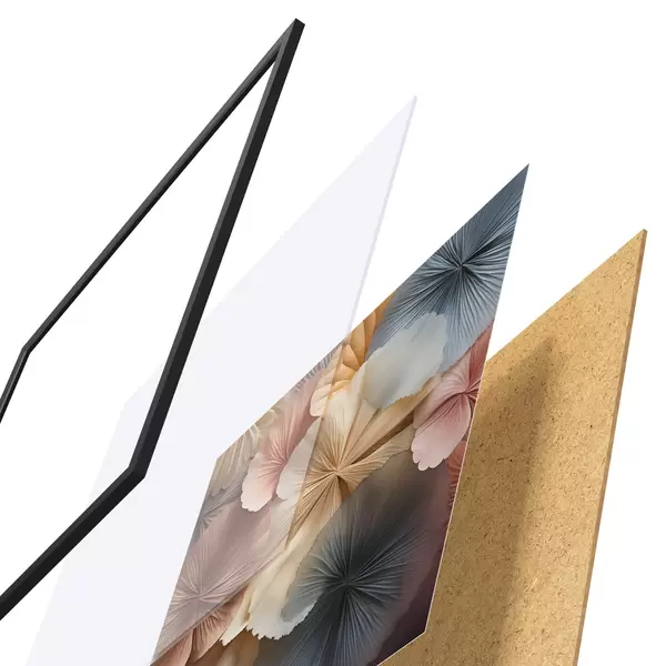 Plagát sa skladá z rámu, plexiskla, vytlačeného obrazu a podkladu z drevotriesky. Plagát možno okamžite zavesiť na stenu vďaka úchytom na zadnej strane.