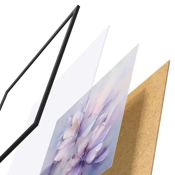 Plagát sa skladá z rámu, plexiskla, vytlačeného obrazu a podkladu z drevotriesky. Plagát možno okamžite zavesiť na stenu vďaka úchytom na zadnej strane.