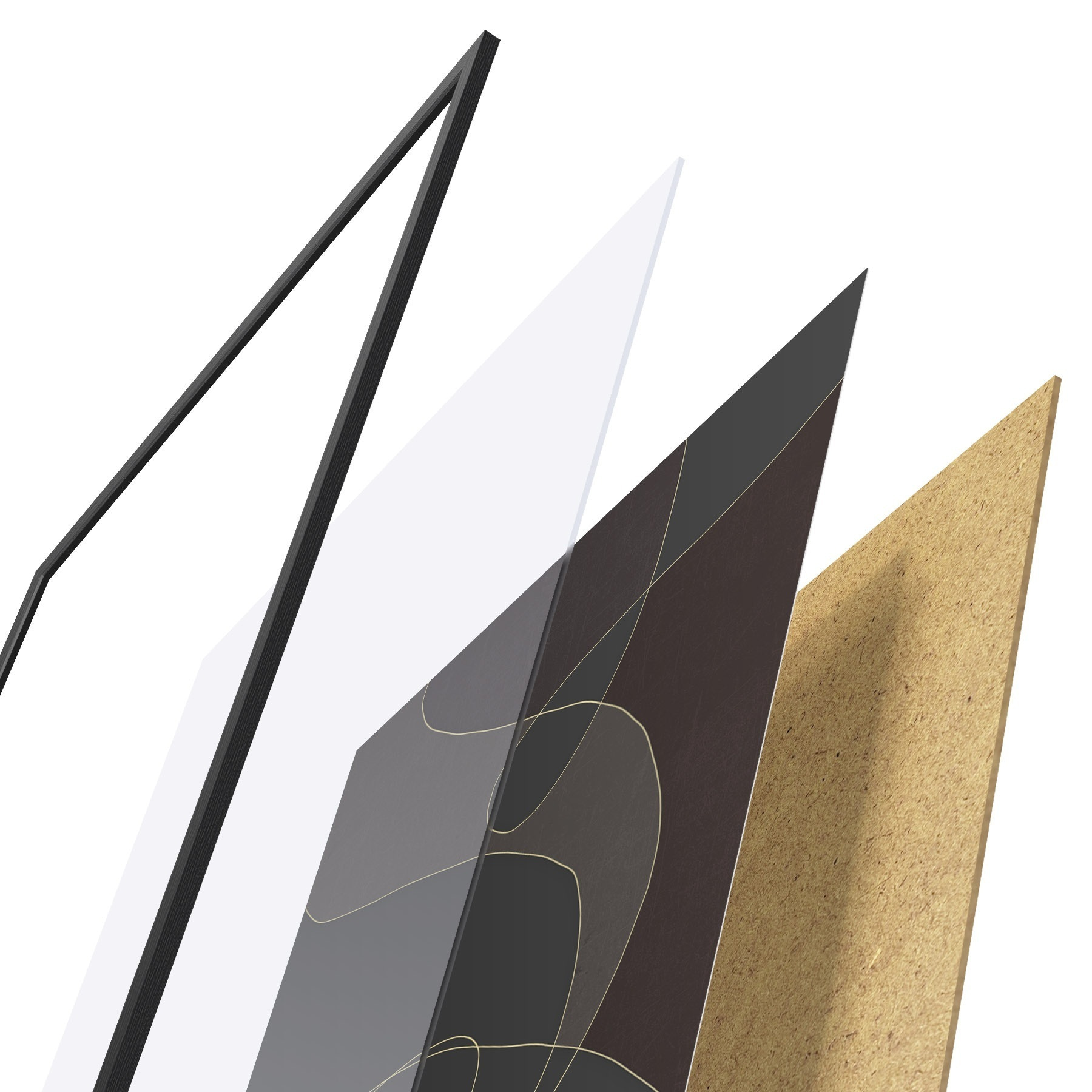 Plagát sa skladá z rámu, plexiskla, vytlačeného obrazu a podkladu z drevotriesky. Plagát možno okamžite zavesiť na stenu vďaka úchytom na zadnej strane.