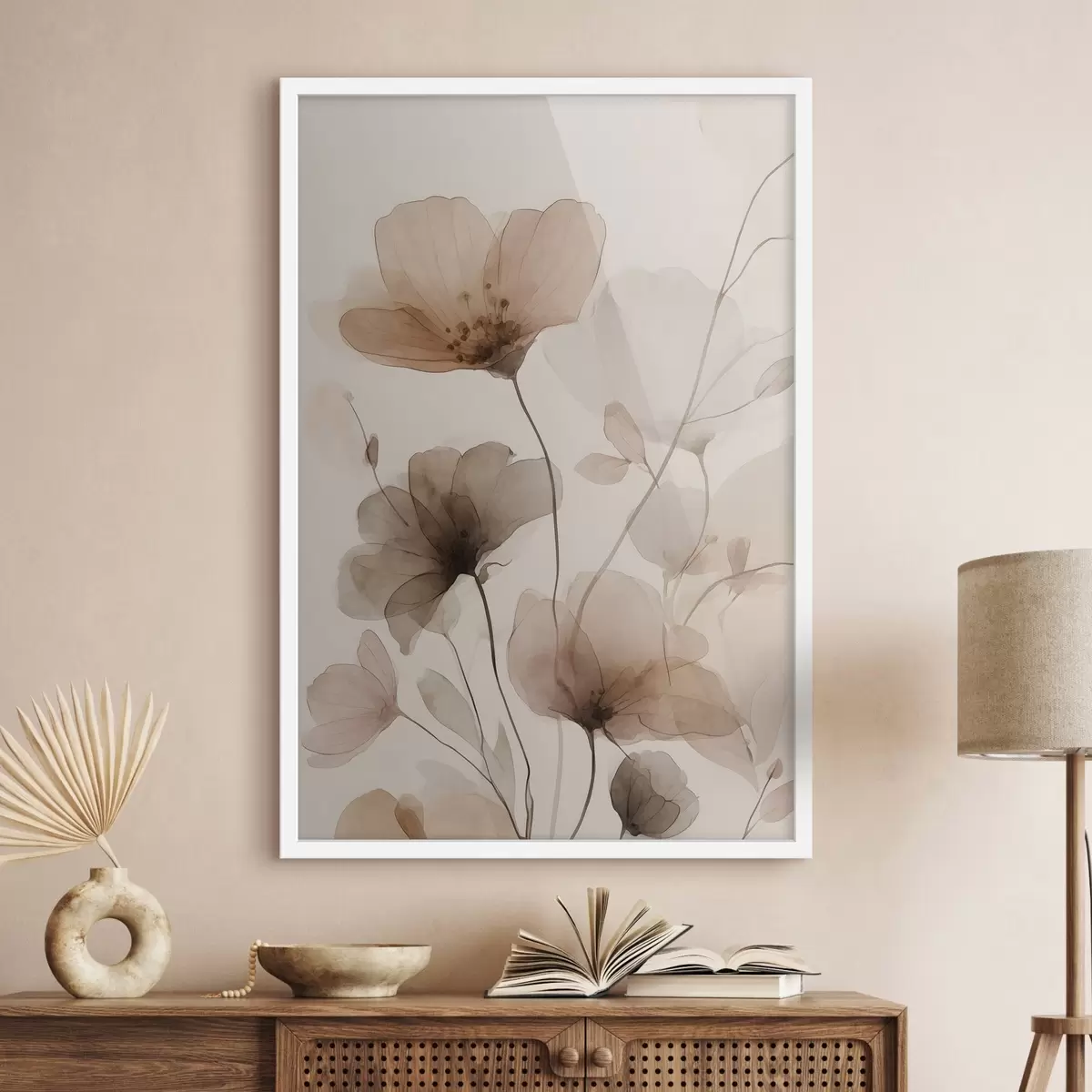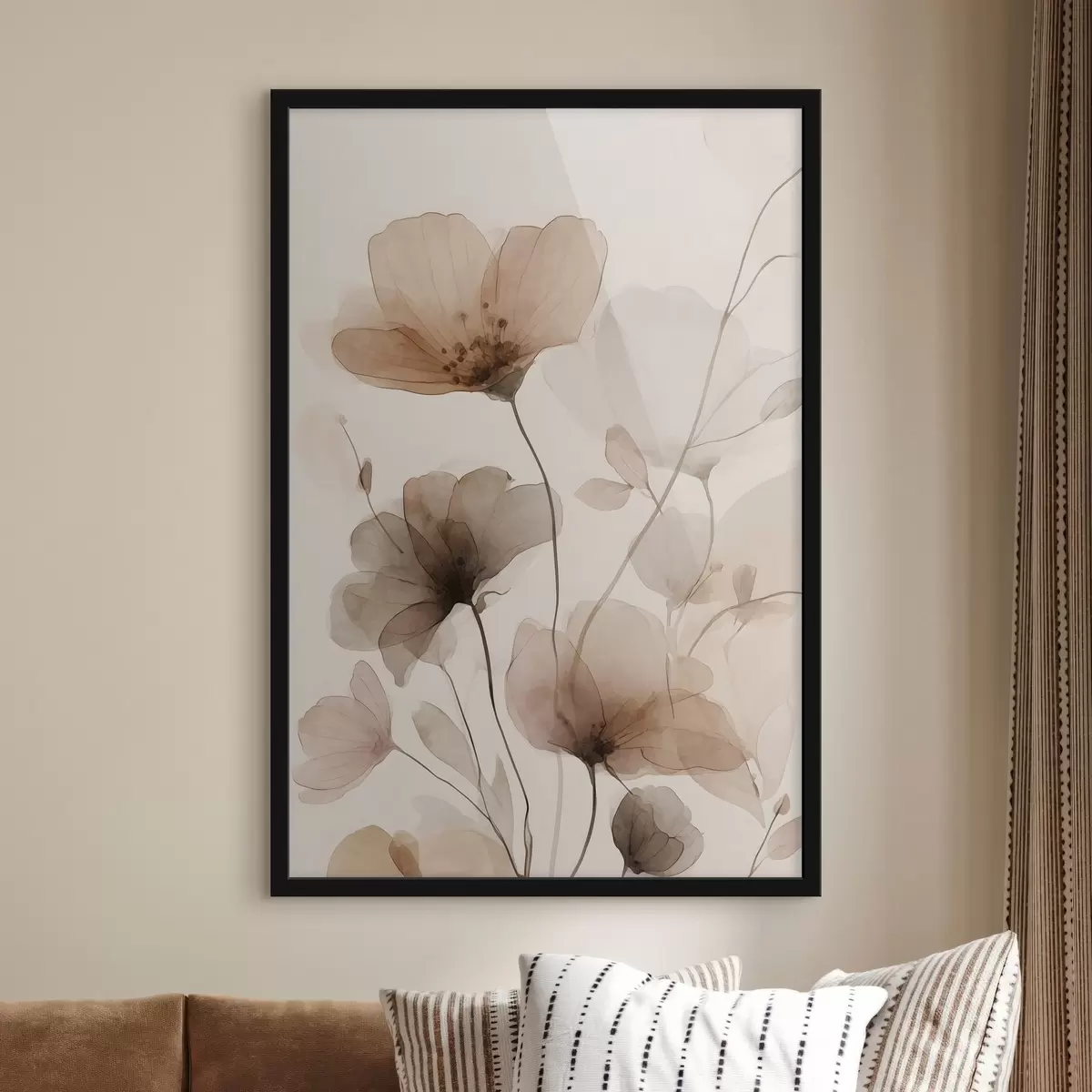 Plagáty akvarelové kvety v odtieňoch hnedej Nr f49006