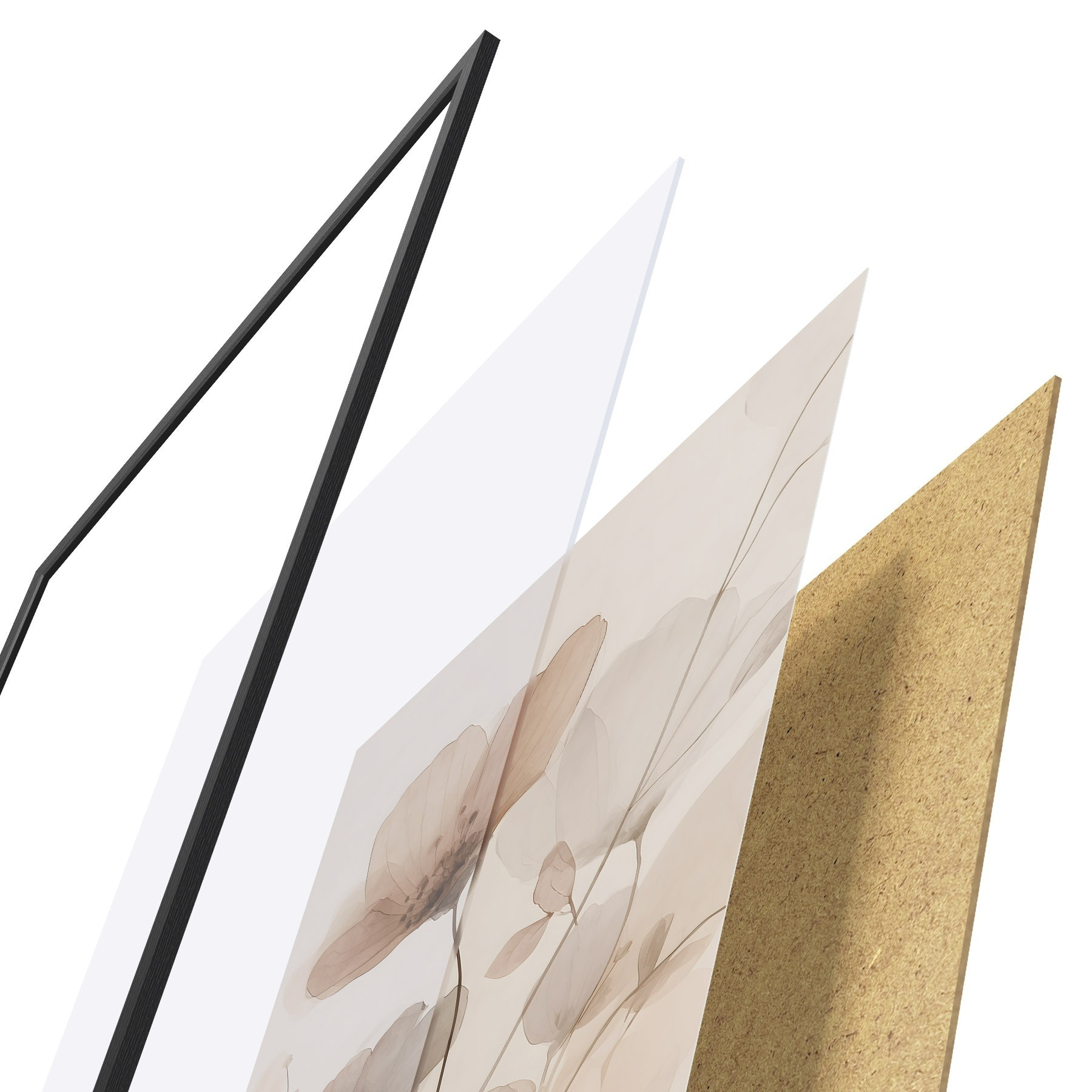 Plagát sa skladá z rámu, plexiskla, vytlačeného obrazu a podkladu z drevotriesky. Plagát možno okamžite zavesiť na stenu vďaka úchytom na zadnej strane.