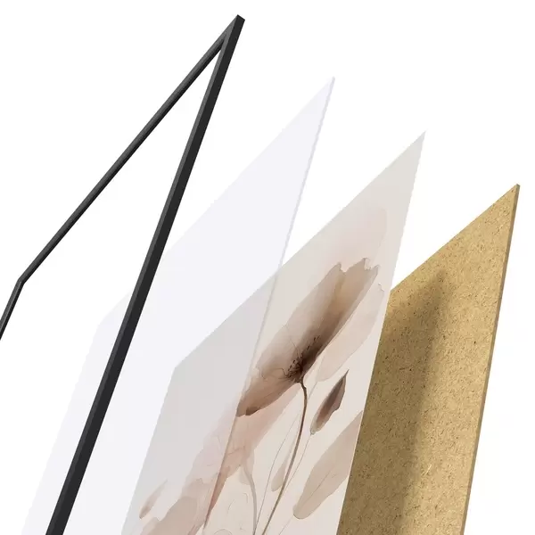 Plagát sa skladá z rámu, plexiskla, vytlačeného obrazu a podkladu z drevotriesky. Plagát možno okamžite zavesiť na stenu vďaka úchytom na zadnej strane.