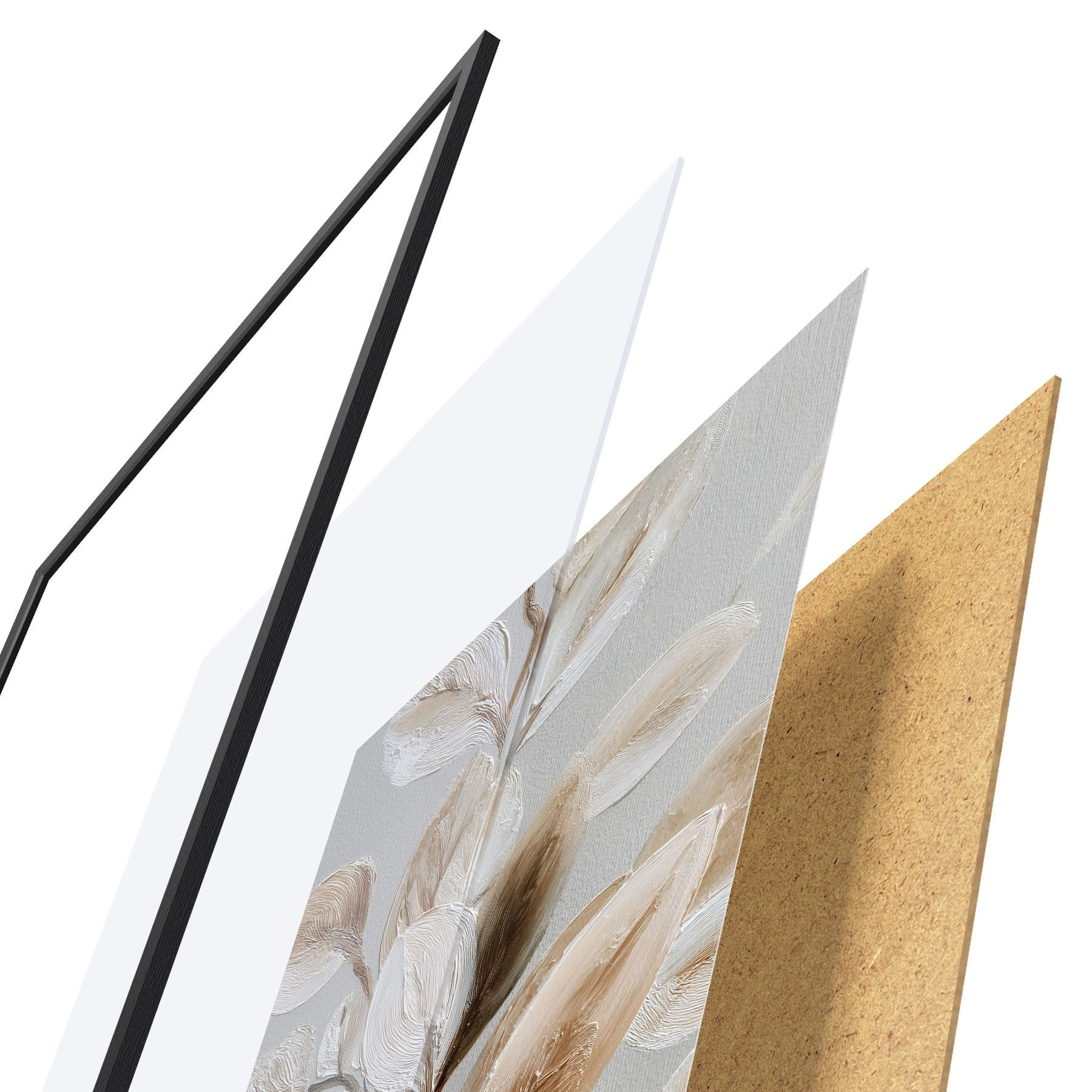 Plagát sa skladá z rámu, plexiskla, vytlačeného obrazu a podkladu z drevotriesky. Plagát možno okamžite zavesiť na stenu vďaka úchytom na zadnej strane.