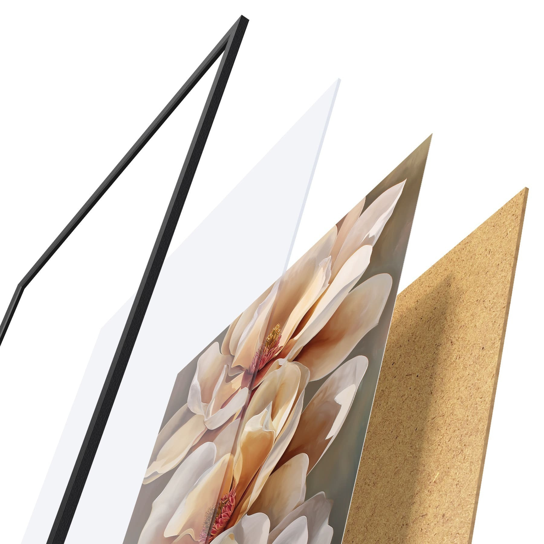 Plagát sa skladá z rámu, plexiskla, vytlačeného obrazu a podkladu z drevotriesky. Plagát možno okamžite zavesiť na stenu vďaka úchytom na zadnej strane.