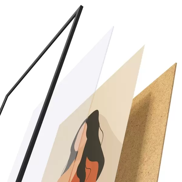 Plagát sa skladá z rámu, plexiskla, vytlačeného obrazu a podkladu z drevotriesky. Plagát možno okamžite zavesiť na stenu vďaka úchytom na zadnej strane.