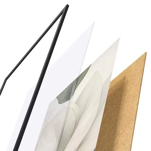 Plagát sa skladá z rámu, plexiskla, vytlačeného obrazu a podkladu z drevotriesky. Plagát možno okamžite zavesiť na stenu vďaka úchytom na zadnej strane.