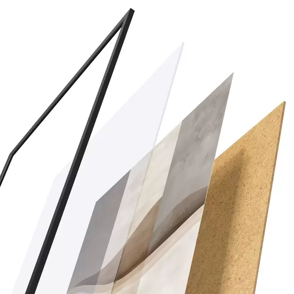 Plagát sa skladá z rámu, plexiskla, vytlačeného obrazu a podkladu z drevotriesky. Plagát možno okamžite zavesiť na stenu vďaka úchytom na zadnej strane.