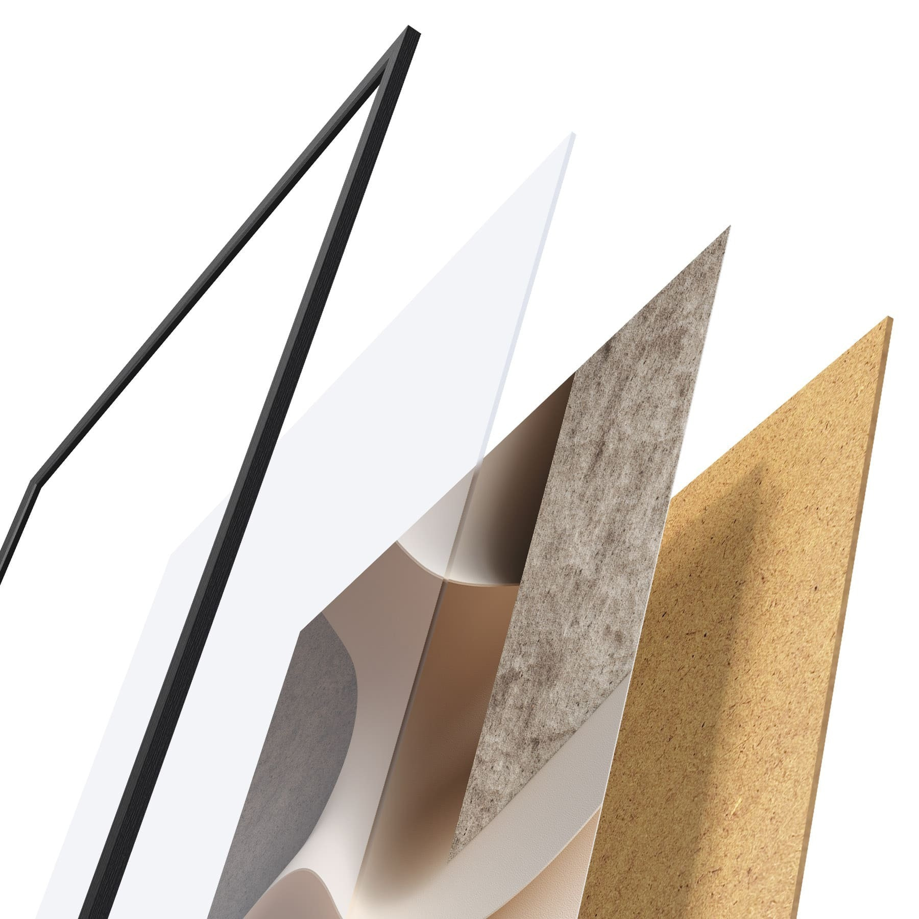 Plagát sa skladá z rámu, plexiskla, vytlačeného obrazu a podkladu z drevotriesky. Plagát možno okamžite zavesiť na stenu vďaka úchytom na zadnej strane.
