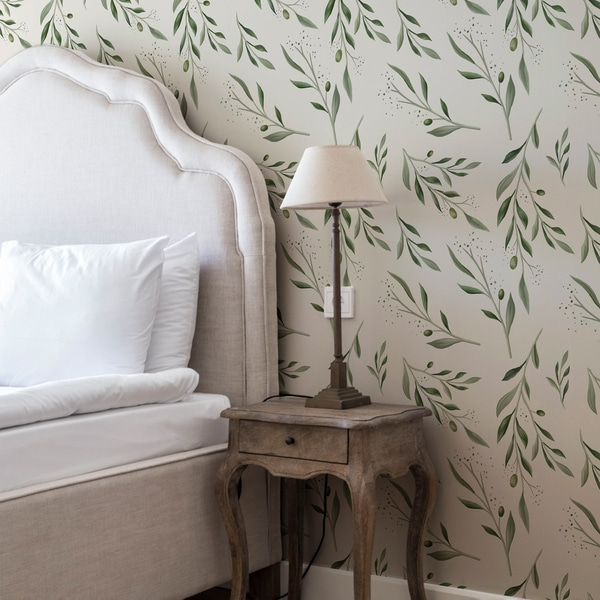 Botanický damask na mätovo-olivovom pozadí