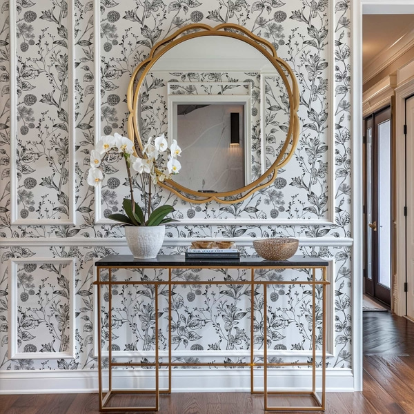 Monochromatický kvetinový ornament s vtákmi