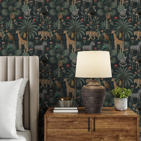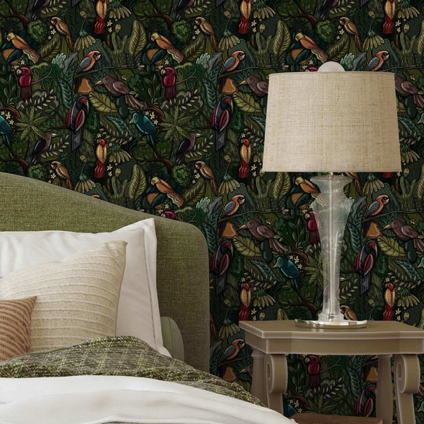 Štylizované tukany medzi palmovými listami