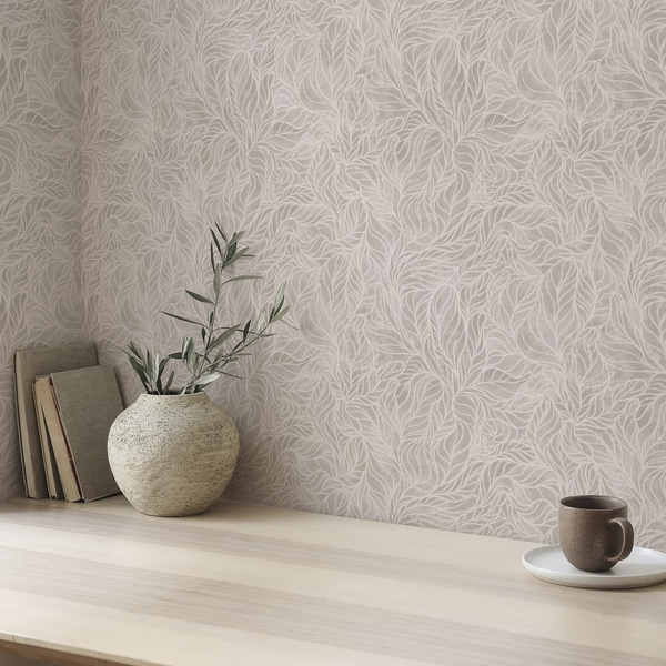 Lístie a tráva v terakotovo-béžovej farebnej palete