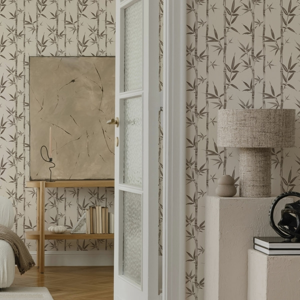 Vertikálne pruhy s levanduľovými vinetami, teplá béžová farba