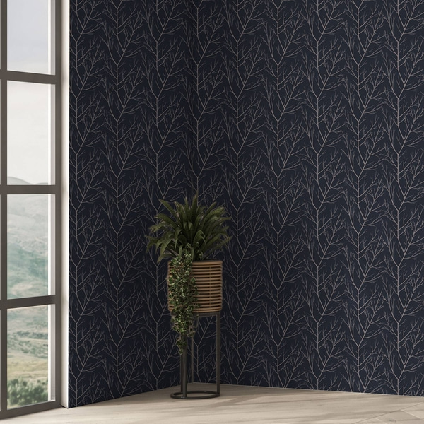 Široké pruhy s maliarskymi vetvičkami v modro-olivových odtieňoch